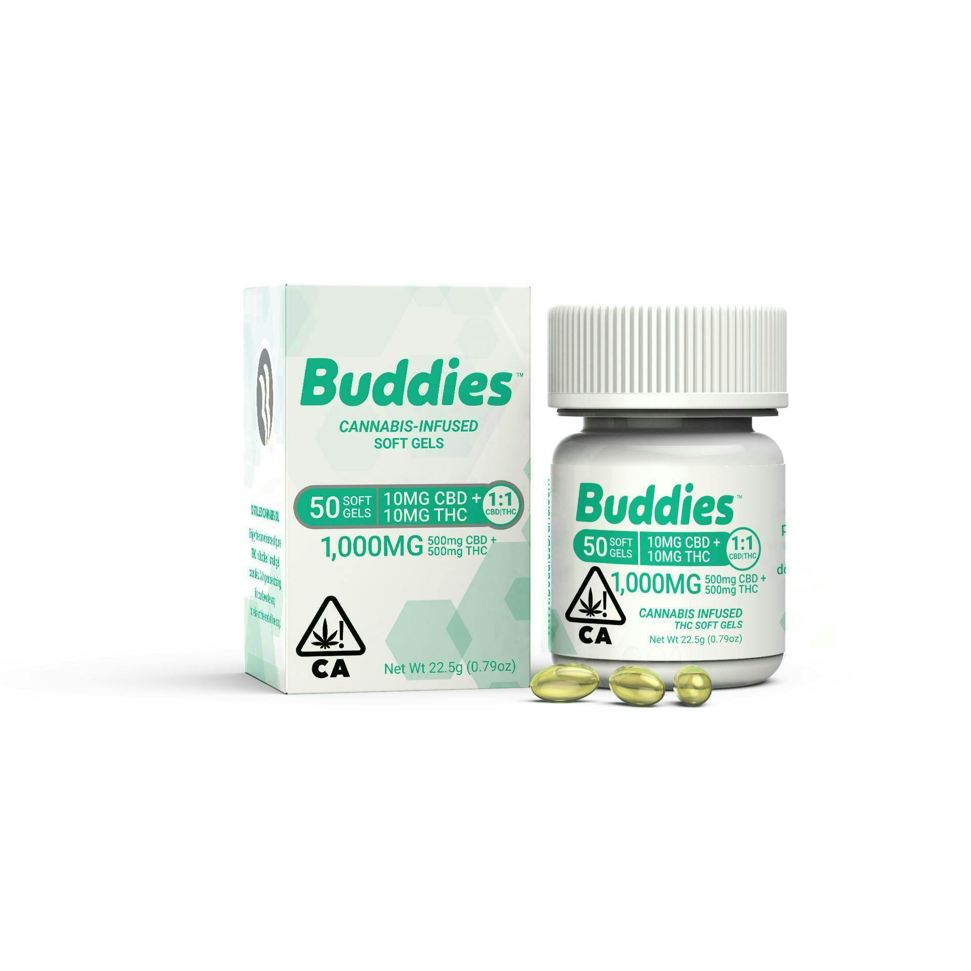 Buddies | 10mgCBD:10mgTHC | Soft Gels 50ct | 500mgCBD:500mgTHC