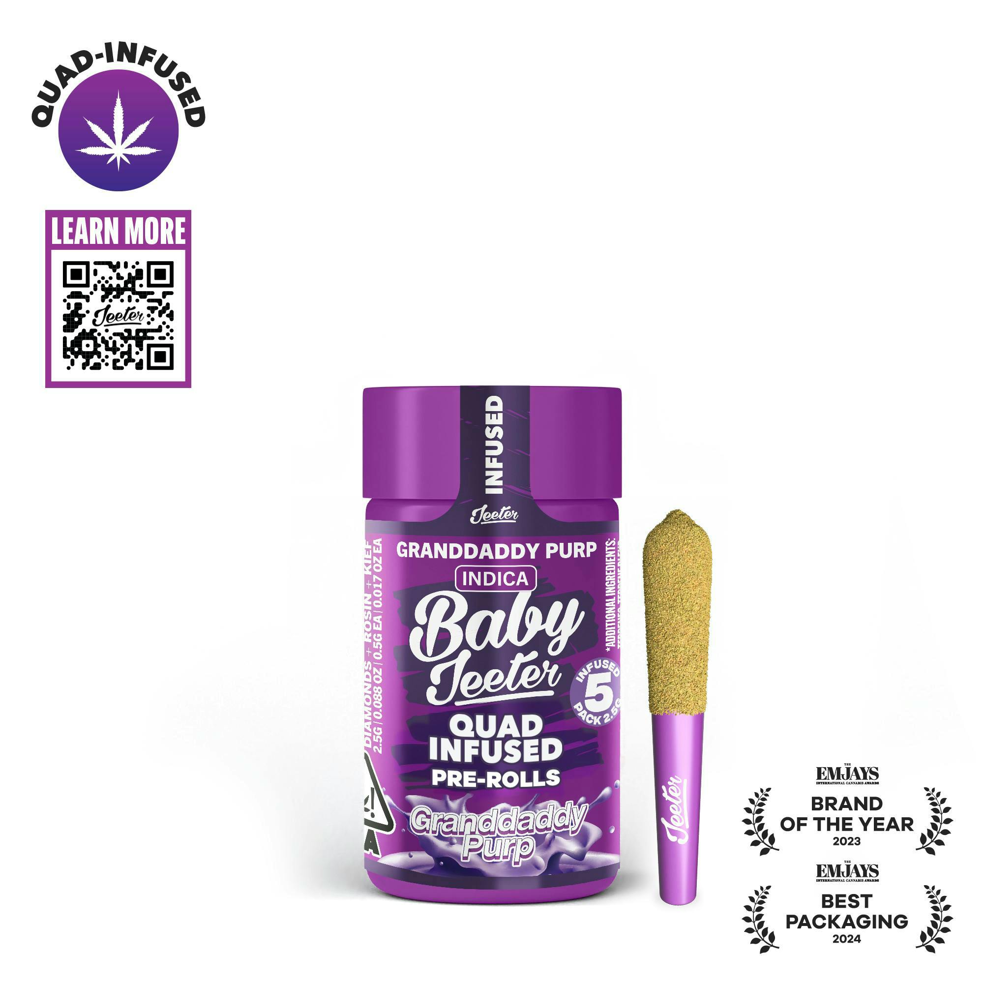 Baby Jeeter | Granddaddy Purp | Indica | Infused Pre-rolls 5pk | 2.5g